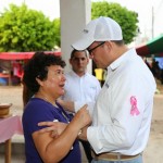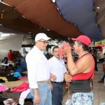 - César Abarca acudió a platicar con los comerciantes del Tianguis del Barrio Santa María, para socializar una obra que iniciará en próximos días en esta zona.